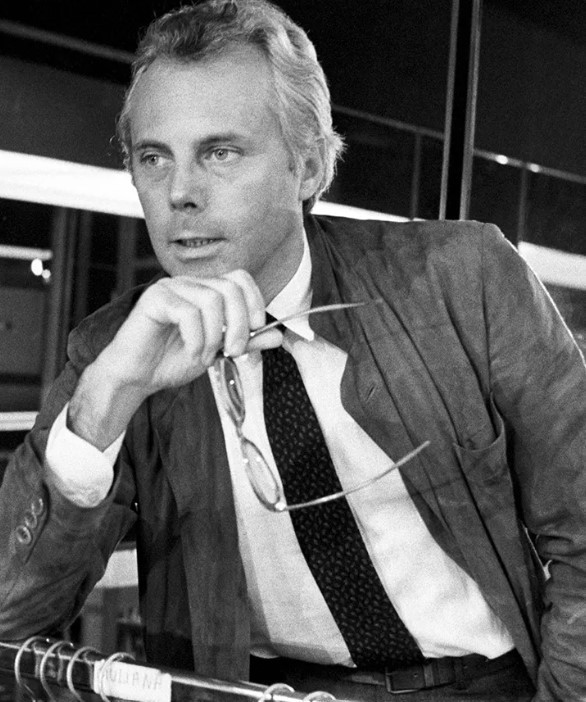 Giorgio Armani révolutionne la mode dans les années 1970 avec ses silhouettes minimalistes et déconstruites, incarnées par les vestes souples et les costumes non structurés[18],[19]. Il s'inspire du cinéma italien des années 1960–70, notamment Alain Delon dans Le Samouraï[20] ou Marcello Mastroianni dans La Dolce Vita, et transforme l’élégance masculine et féminine en une forme contemporaine, sobre et sophistiquée[21],[22].